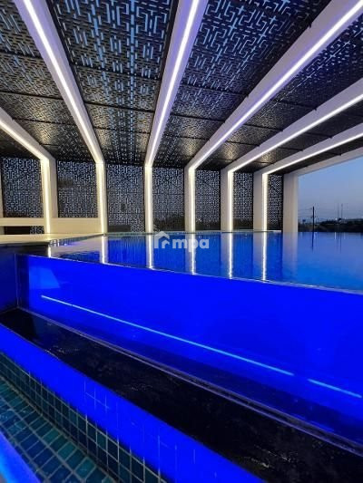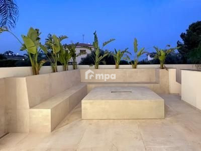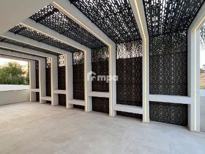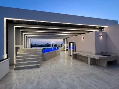 Most of the area is covered with perforated designer PVC panels attached to an imposing modern structure. Even on the hottest summer days you will still be able to enjoy outdoor living at your designer overflowing pool. The roof garden has a proper roof master suite with magical views of the pool. The 256 square meter roof garden of the Yacht House is the ideal space for parties, gatherings and barbecues. The level of detail and lighting all around the house is spectacular but on the roof garden its on another level. The use of warm high-power LEDs offers a unique and unparalleled night experience!
