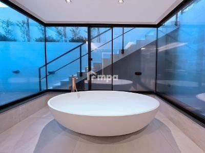 Basement you will find a large living/cinema room ideal for the occupants of the lower level. There you will also find a large laundry room with a kitchenette and a guest bathroom. The master bedroom opens to a high wall surrounding the balcony and boasts an external view bathroom. On the other side of the living/cinema room, you will find an additional en suite bedroom ideal for guests. As you exit the basement level into the luxurious parking space to the right you will find the maids room. The parking is large enough to park 4 cars and has a Tesla charging station.\