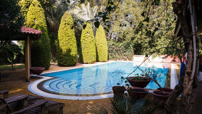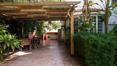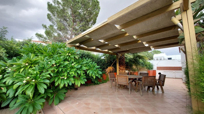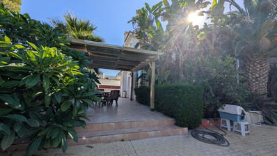 The house has a unique and mature garden with a lot of mature trees which have been very looked after. It also has a nice covered sitting area with decking next to the pool.