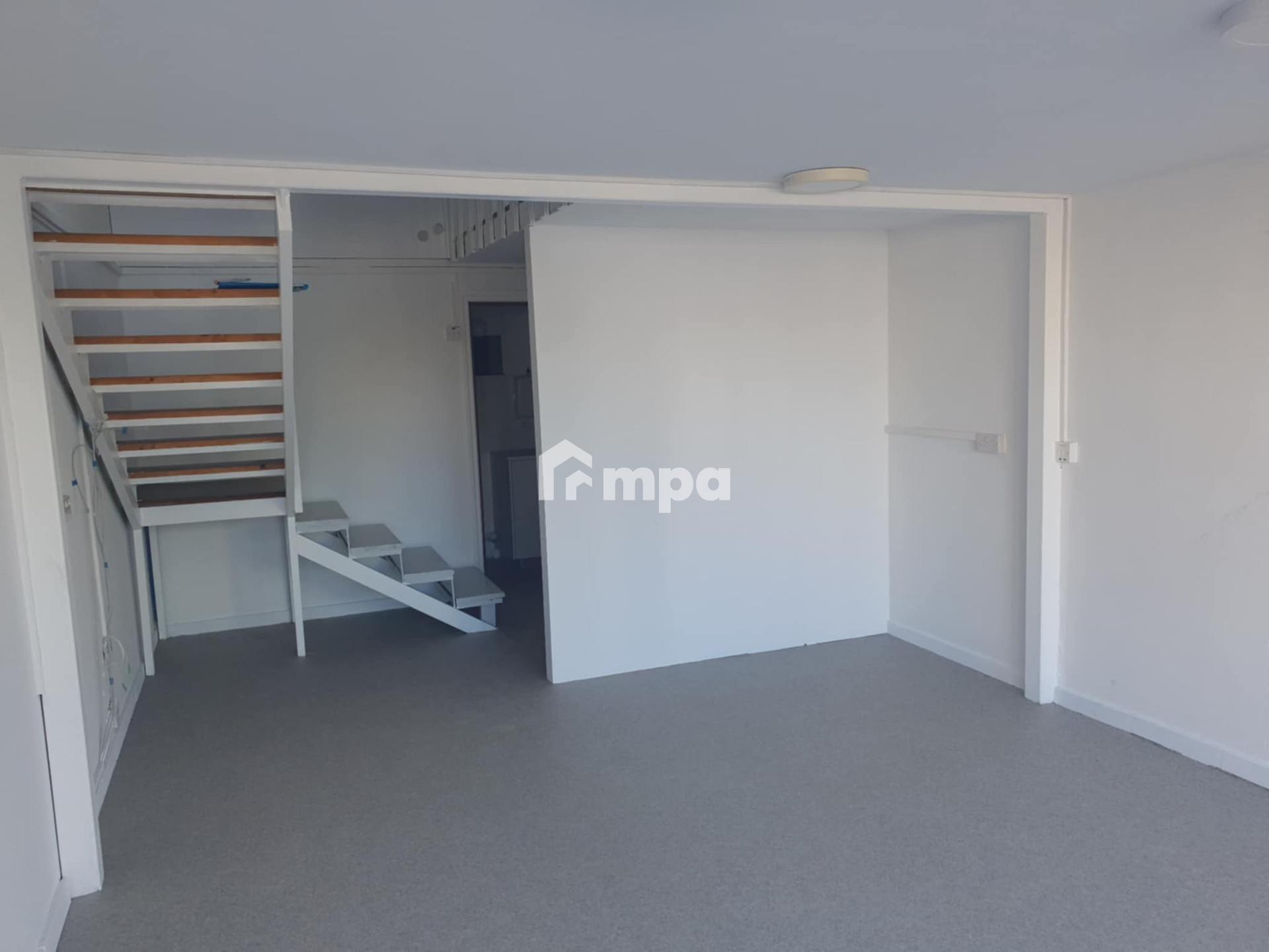 The ground floor office measures 37 sq.m. ground floor and 33 sq.m. mezzanine.