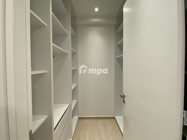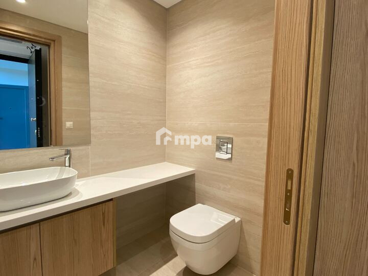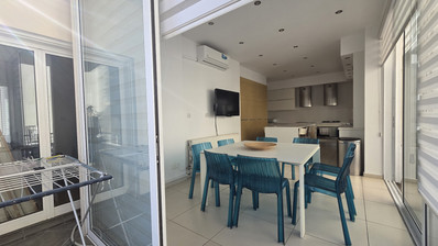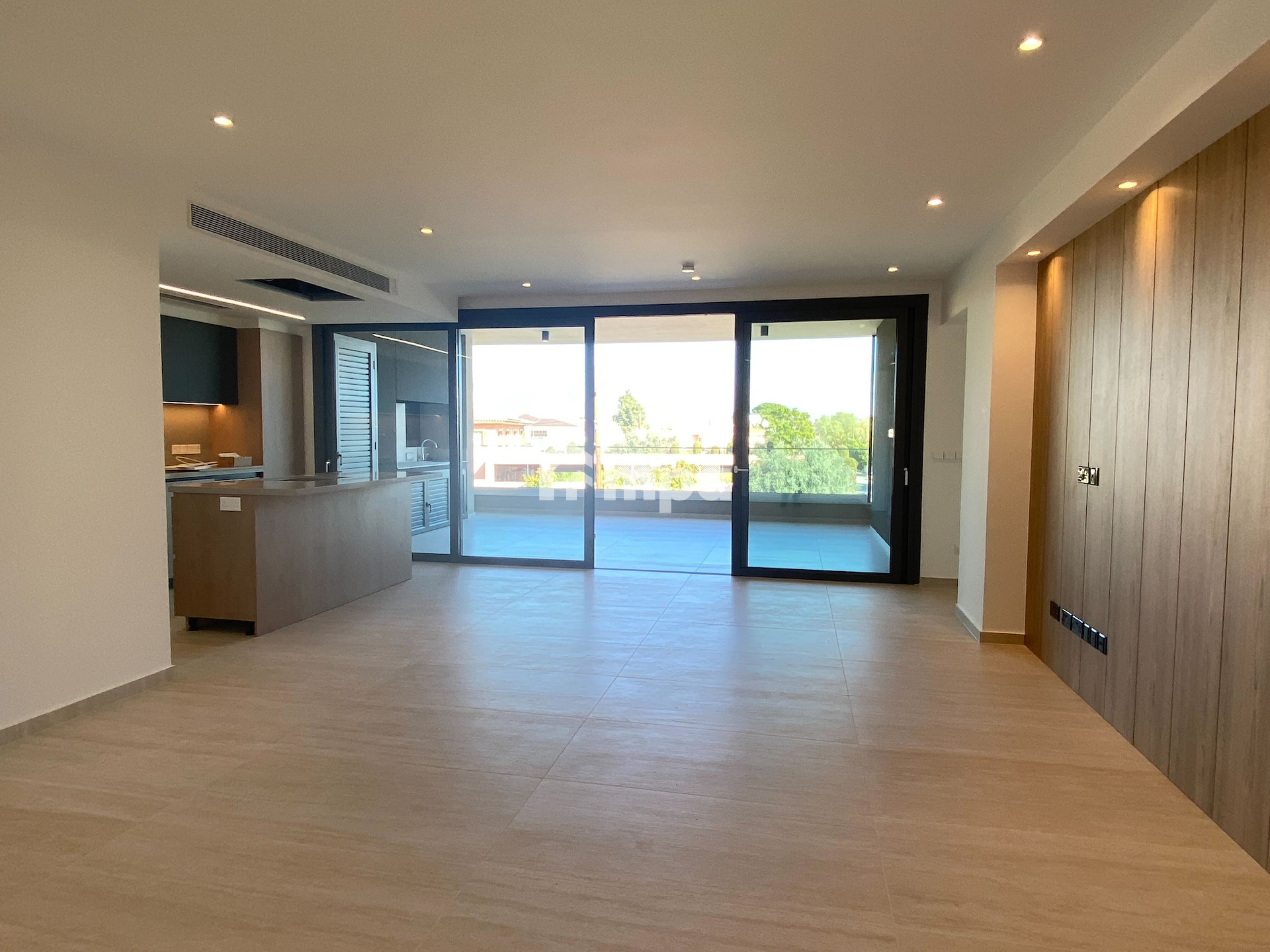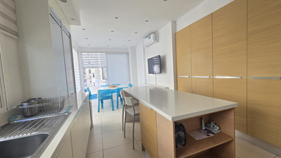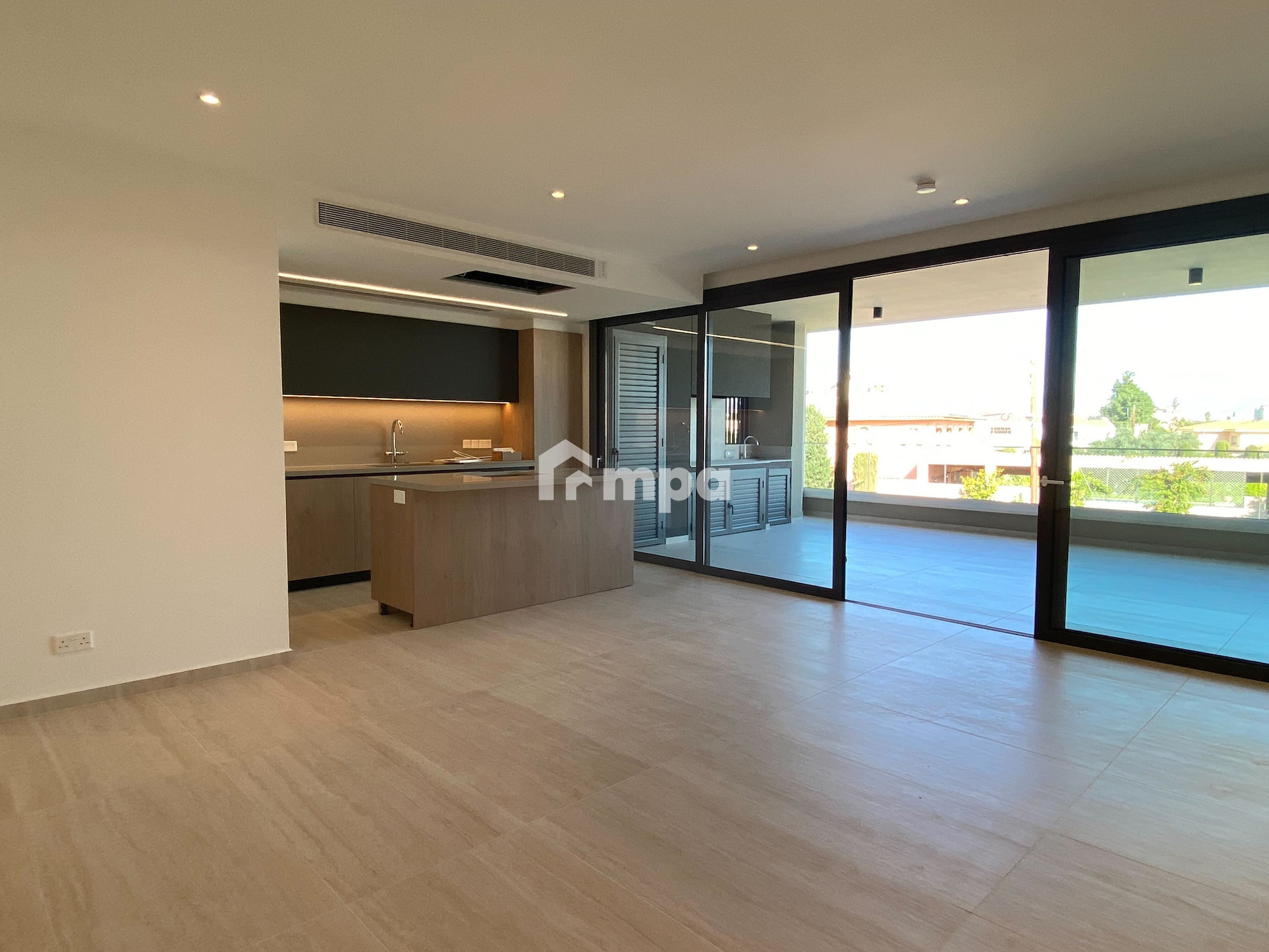 The apartment offers 136 sqm of internal space, an open-plan kitchen with high-end appliances, a spacious living area, and premium finishes throughout.