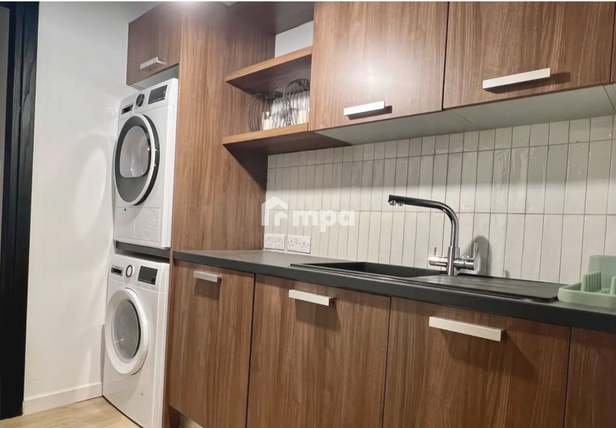 It consists of a fully equipped kitchen, living room, and a guest toilet on the ground floor.