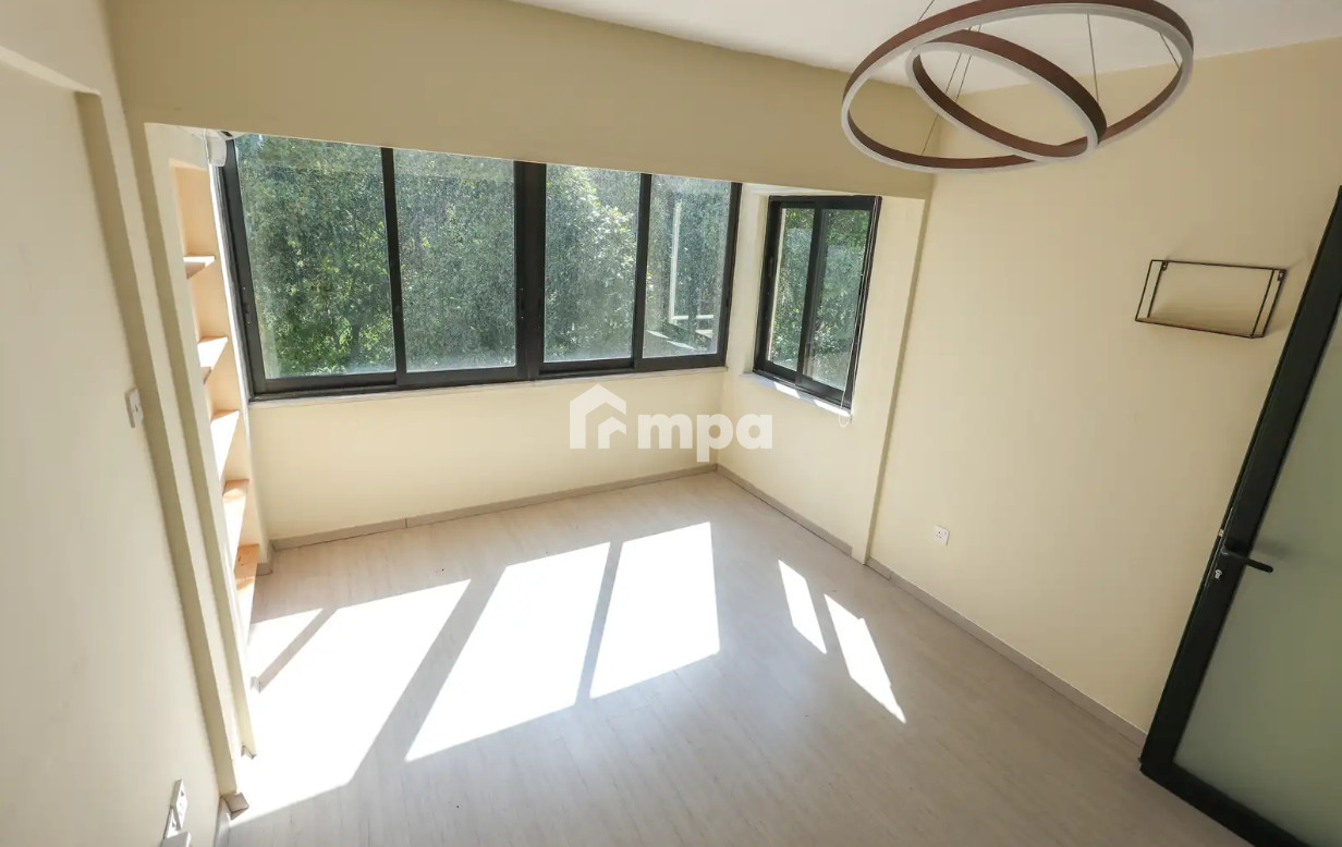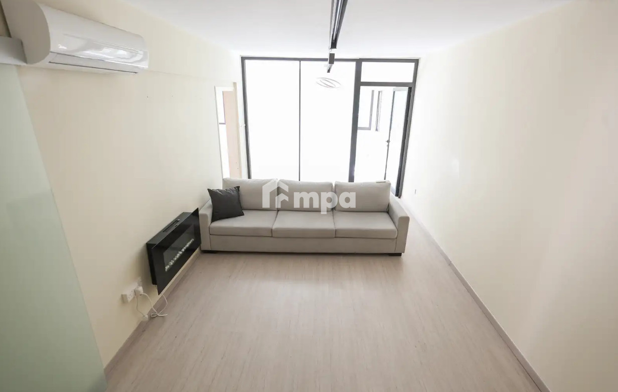 Partially furnished, the apartment is move-in ready and features a bright living area with city views. The building, originally constructed in 1985, underwent a full renovation in 2018, bringing modern finishes and functional upgrades throughout the home.